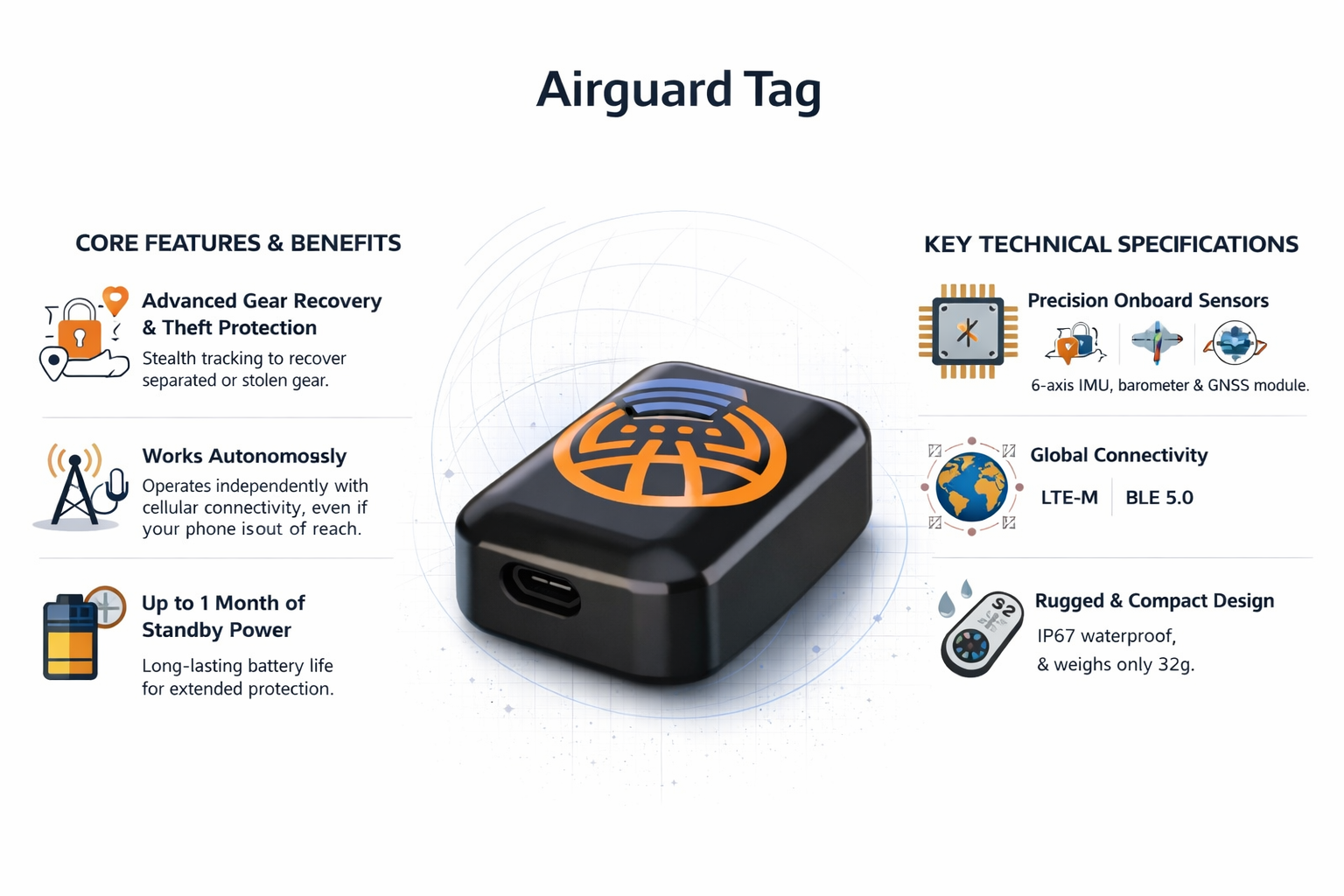 • Transmits precise location via LTE-M, NB-IOT